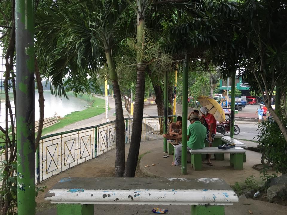 隣に座る女性が対岸を指さして言う。ここはいいところよ、最近はジョギングの人が多いのよ、でも台風オンドイが来た時はあそこの高さまで水が来て、たくさん家が流されたのよ。